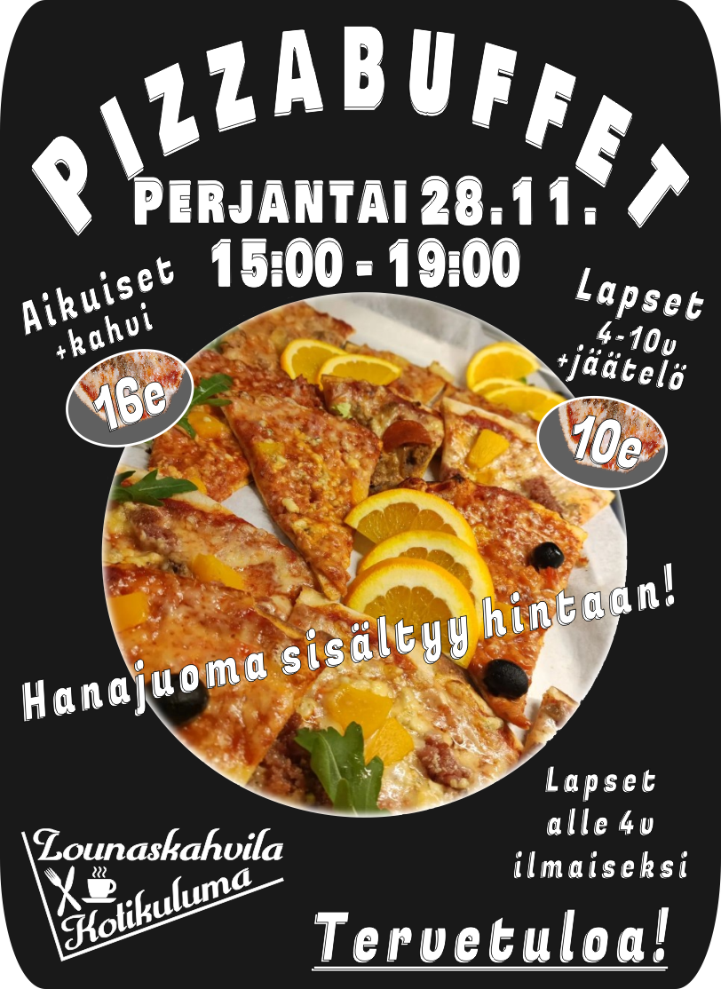 Pizzabuffet 28.11. klo 15 – 19! Tervetuloa!