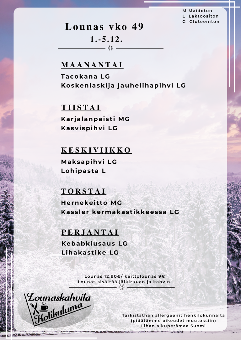Yleinen jouluruokailu 18.12. 7.30 – 19.00